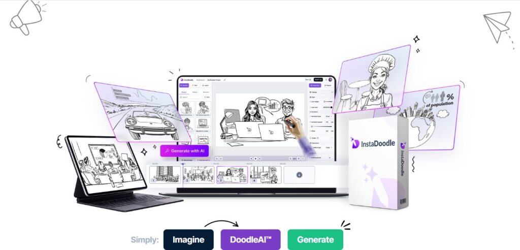 InstaDoodle is the world’s first AI Doodle Video Creation App, designed to make whiteboard animations as easy as typing your idea into a box.
